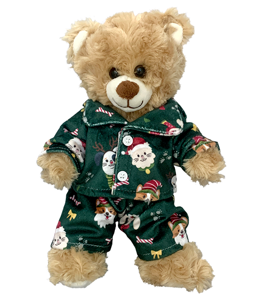 Green “Puppies and Kitties” Pj’s for 8″ stuffed animals.