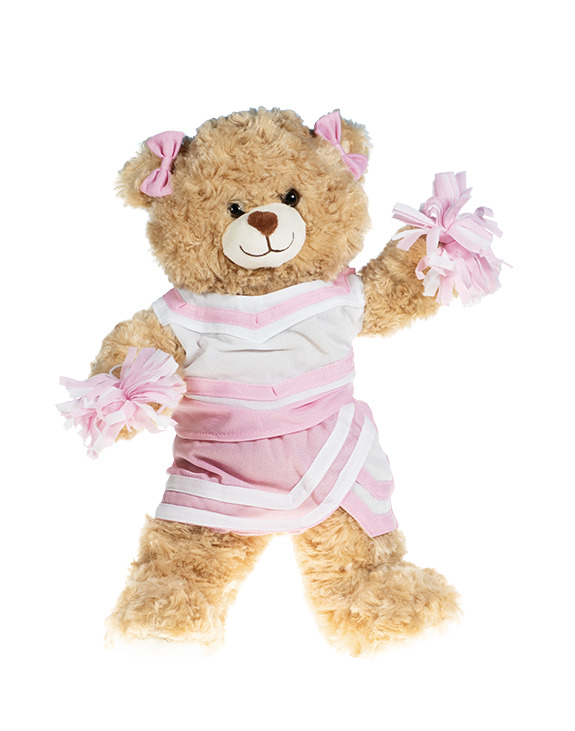 Show your spirit! This smaller light pink cheer outfit comes with the top and skirt, panties, 2 bows and 2 pom poms. Animal is not included.