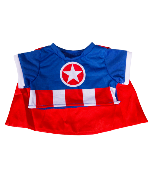 Our A”Bear” ican Hero Tee w/ cape (16″) T-Shirt will fit 16 inch stuffable build your own bear, animal,or doll. Perfect for your little super hero!