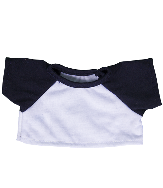 Our Baseball T-Shirt with Black Sleeves will fit 8 inch stuffable build your own bear, animal,or doll.