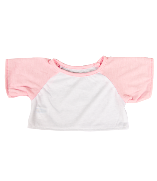 Our Baseball T-Shirt with Pink Sleeves will fit 16 inch stuffable build your own bear, animal,or doll. Perfect to decorate with colorful fabric markers.