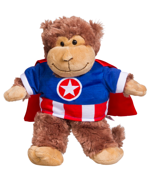Our Captain “Bear” ican Tee with Cape T-Shirt will fit 8 inch stuffable build your own bear, animal,or doll. Perfect for your little super hero!
