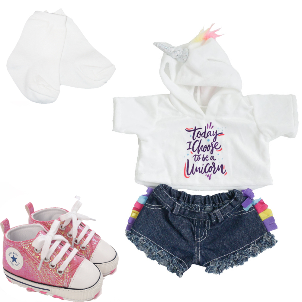Today I Choose to be a Unicorn Hoodie and Denim Shorts, Pink Sparkle Tennis Shoes and White Socks